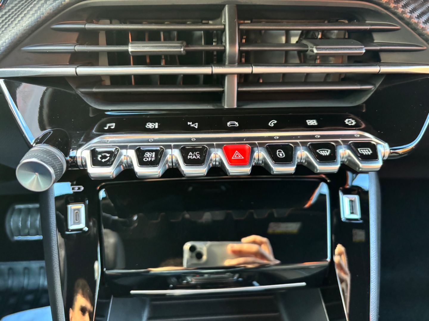 • Calandre avec grille superieure avec marquage chrome brillant et enjoliveur superieur noir graine
