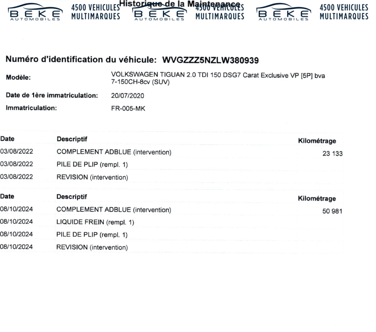 Thiais (94) - 60 245 Km Mise en circulation : 20/07/2020 -